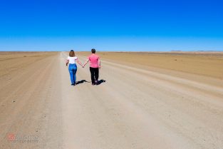 Uszczęśliwieni opuszczamy posterunek i ruszamy w stronę Aus. Droga dość szybko zamienia się w asfalt i gdyby nie to, że znów masakrycznie mocno wieje to byłoby całkiem „spoko”. W zachodzącym słońcu widzimy jak skrzy się piasek – to na pewno te diamenty, których szukał ten gościu. Gdyby nie deficyt czasu pewnie byśmy się zatrzymali i trochę zebrali 😊